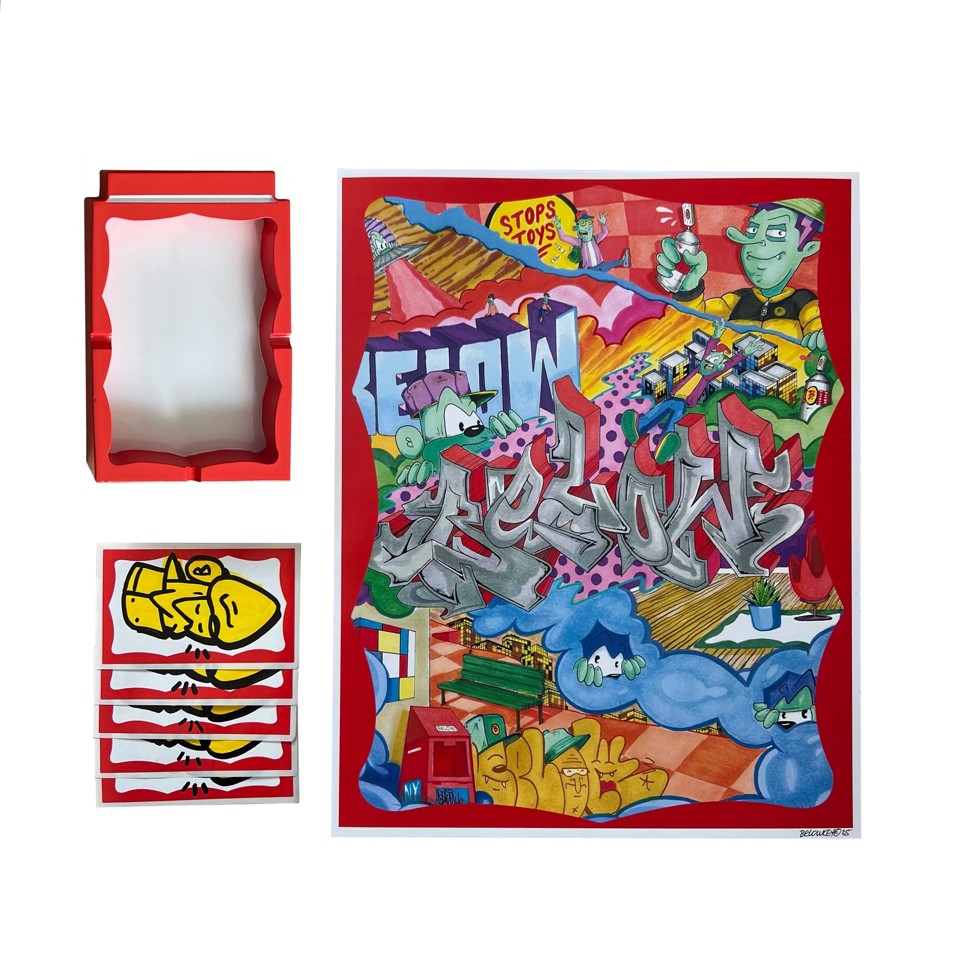 +Bundle Option - 1x Wavy Catchall, 1x Signed/Numbered BELOWKEY Print (Edition of 20), 5x Hand Drawn Eggshell Stickers